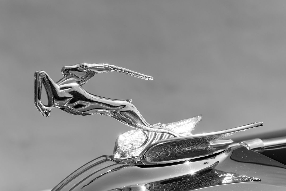 1933 proved to be a year of many innovations for Chrysler Corporation, including a new and improved three-speed synchromesh transmission, improved steel-alloy valve seats, an oil filtration improvement, and an automatic carburetor choke. Introduced in February 1933 as a mid-year model, the CL Series was the most extravagant automobile the marque had produced to date. The Custom Imperial featured sweeping fenders and sloped radiators, and a hood that extended back to the windshield base, completely covering the cowl and accentuating the length and size of its already massive engine. Rear-hinged ‘suicide’ doors were used on all of the CL Series cars except limousine bodies, and the Custom LeBaron coachwork options were often produced in mere single digit qualities. The Chrysler CL Imperial line performed just as beautifully as it appeared, becoming known for the remarkable performance and power produced by the “Red-Head” eight-cylinder engine and smooth shifting transmission.